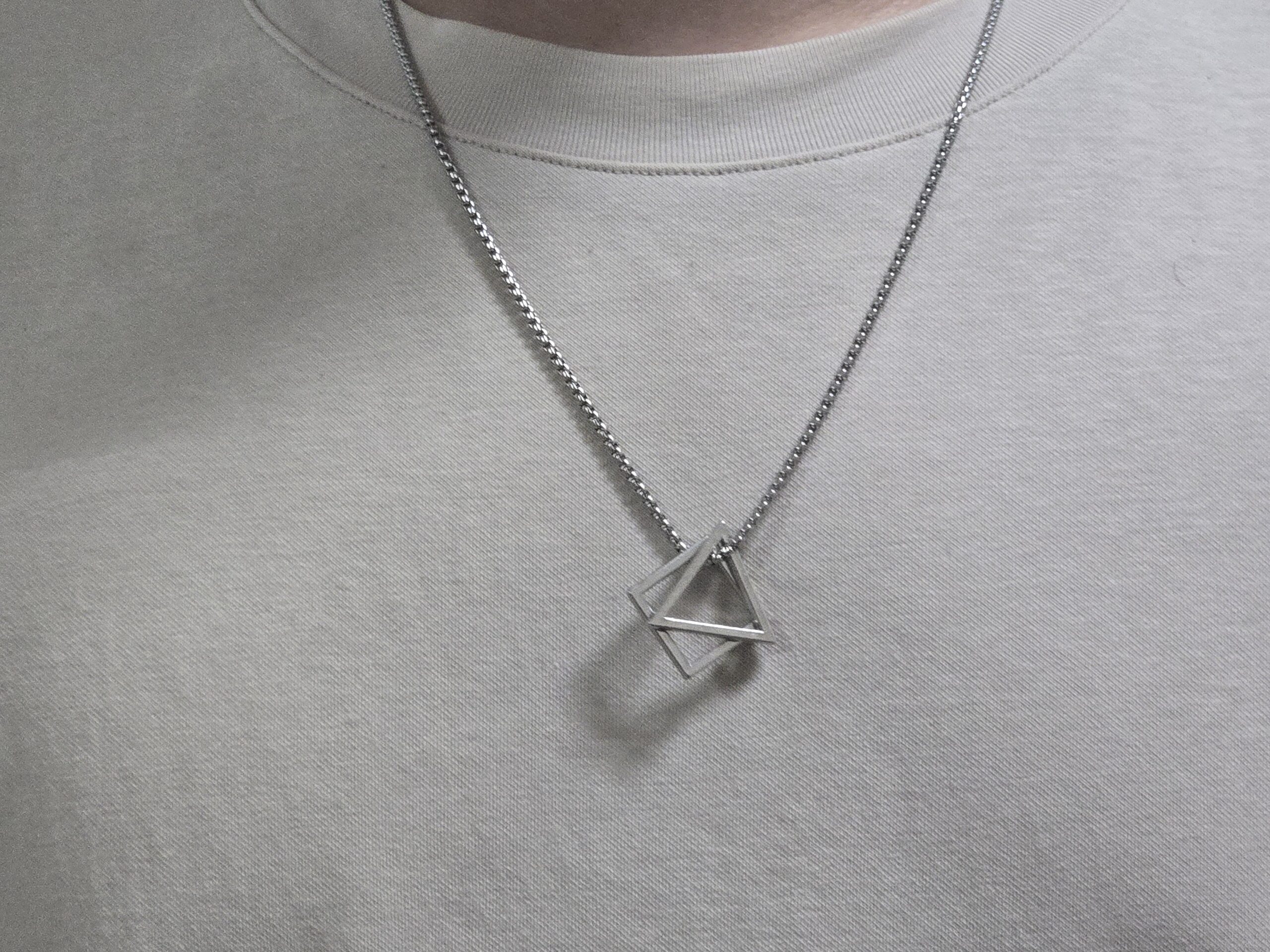 這款時尚的雙層項鍊,巧妙地結合了簡潔俐落的幾何三角墜飾與富有層次感的雙鍊設計。一長一短的鍊條錯落有致,自然疊戴出豐富的視覺效果,為您的頸部增添一份精緻的時尚氣息。金屬光澤的墜飾搭配細緻的鍊條,無論是搭配日常休閒服飾,或是為正式場合的造型加分,都能完美展現您的品味。