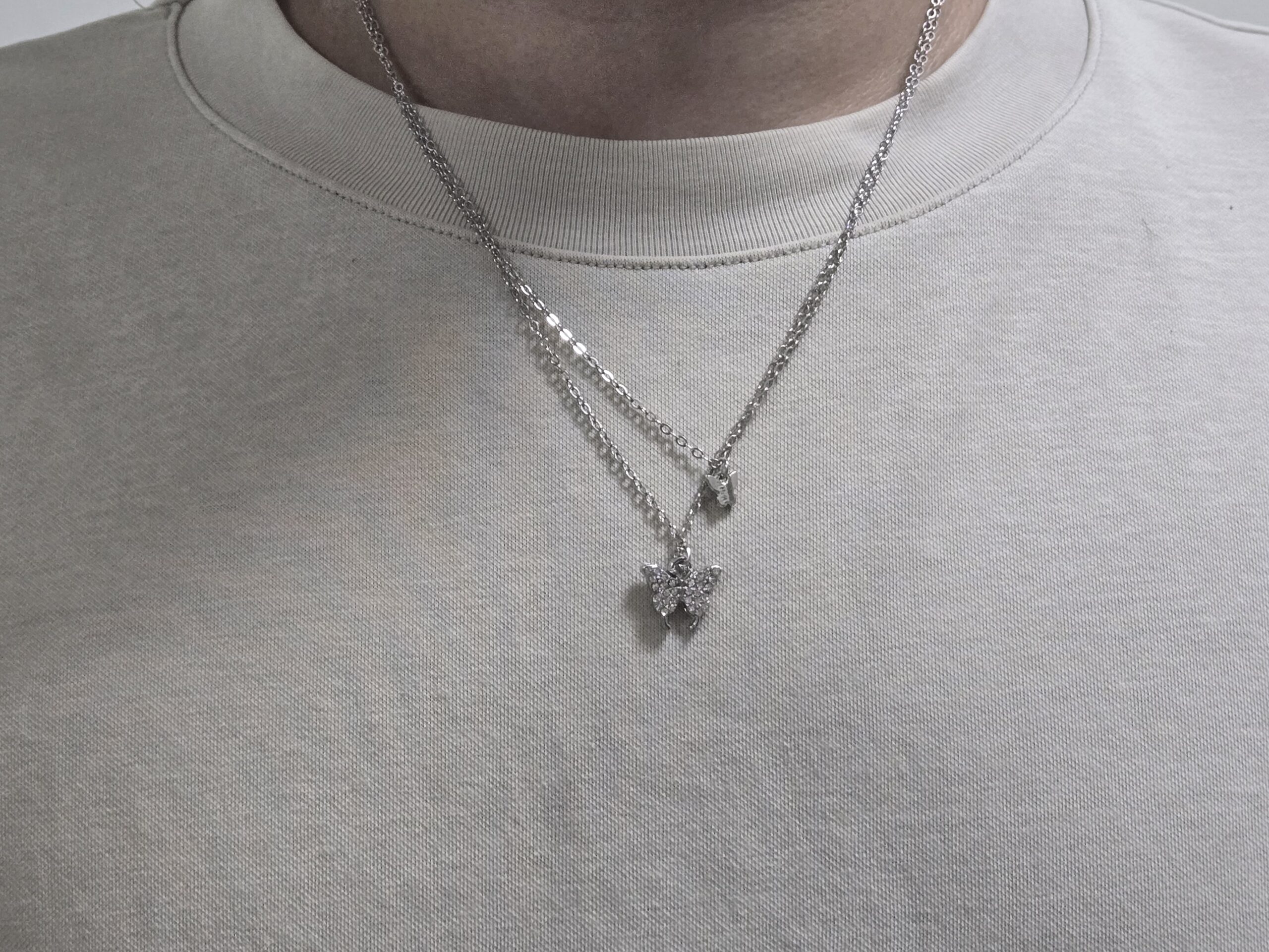 這款令人心動的項鍊,以其靈動且優雅的蝴蝶造型為設計核心,翅膀部分精心鑲嵌著一顆顆閃耀的鋯石,在任何光源下都能綻放出如同鑽石般璀璨的光芒。精緻的做工與細膩的鍊條相得益彰,共同為您增添一份浪漫與華麗的氣息。這款項鍊尤其適合在出席派對、約會或任何需要展現高雅品味的場合佩戴,讓您成為眾人目光的焦點。