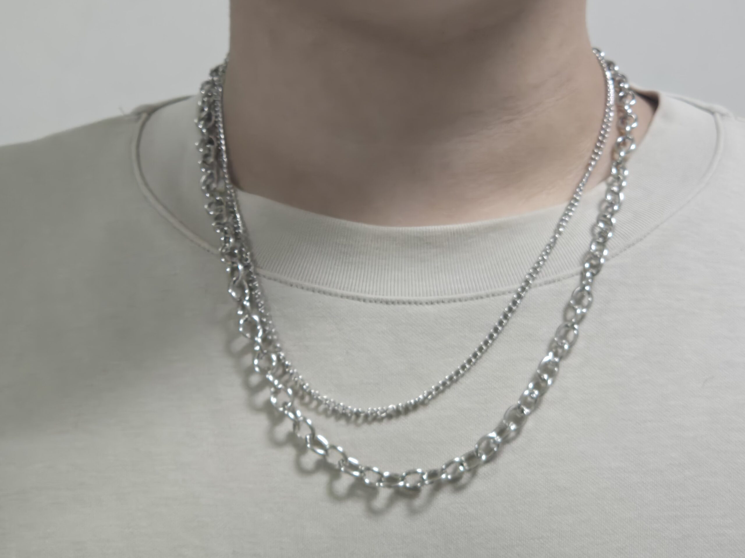 這款簡約而不失格調的雙層項鍊,由兩條不同粗細和編織方式的鍊條精心組合而成。它沒有任何華麗的墜飾,其獨特魅力完全來自於鏈條本身的精緻質感、光澤變化以及自然疊戴所創造出的豐富視覺層次感。這款項鍊完美詮釋了極簡主義的美學,對於喜歡純粹金屬感、追求低調時尚的您而言,是日常穿搭中不可或缺的百搭單品,亦可搭配其他墜飾展現更多變化。